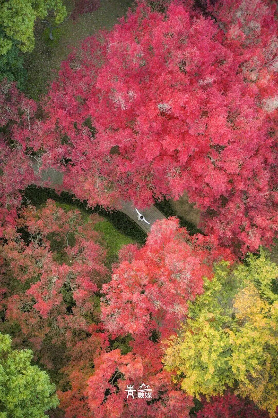 火红一片,灿若云霞。青山公园 “霜天红叶”景区又将走“红”,目前整个枫林红了四成左右,“红”值最浓时刻即将来临。