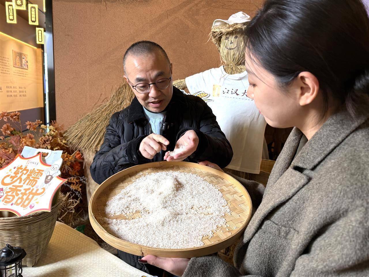 “这就是最终成型的‘江汉大米’,您先看看它的‘颜值’——长粒纤匀、晶莹剔透,这是江汉平原北纬30°黄金种植带的天然馈赠。”直播一开场,主持人就端上“江汉大米”展示在镜头前。